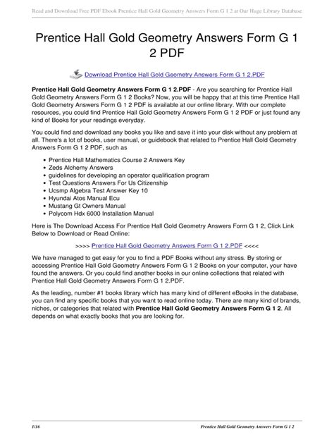 Read Answers For Prentice Hall Geometry Workbook Form G Pdf Doc